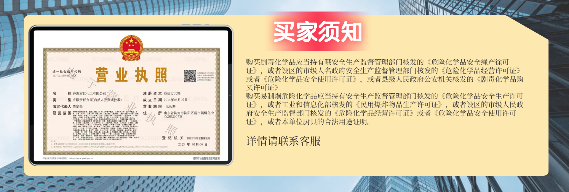 济南宏巨化工有限公司主要经营硫酸铜、智利硼酸、美国硼酸、俄罗斯硼酸、葡萄糖酸钠、片碱、次磷酸钠、六偏磷酸钠、工业尿素、工业柠檬酸、磷酸二氢钾、磷酸、工业葡萄糖、乙二醇、偏硅酸钠、大苏打、小苏打等产品销售于消费者市场,公司与多家零售商和代理商建立了长期稳定的合作关系。
